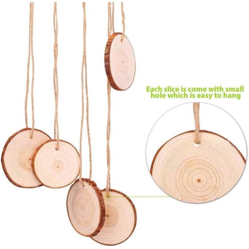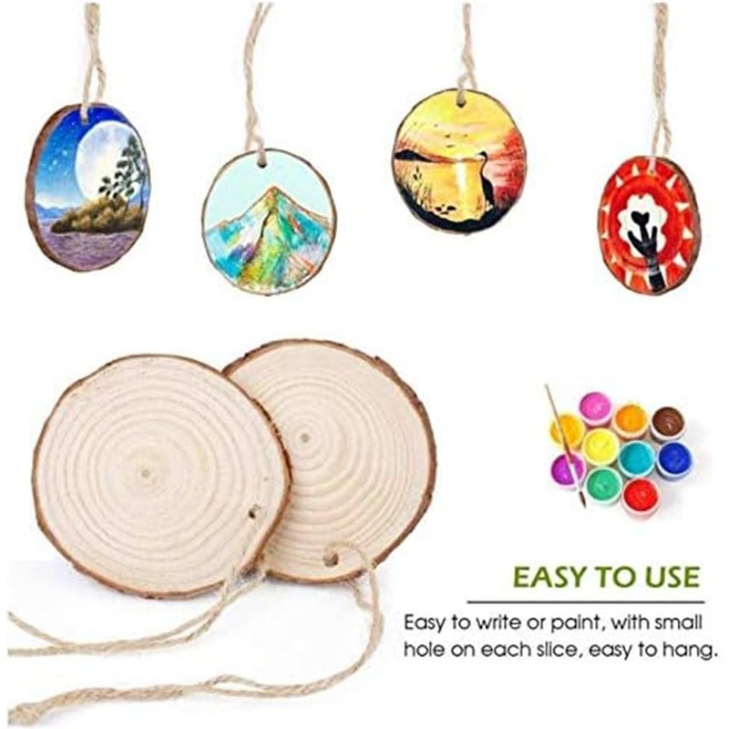 - ★Design: You can write, shape, paint on the smooth wooden discs. Each disc has been drilled with small holes for easy hanging. And each package has 10m jute twine cord.