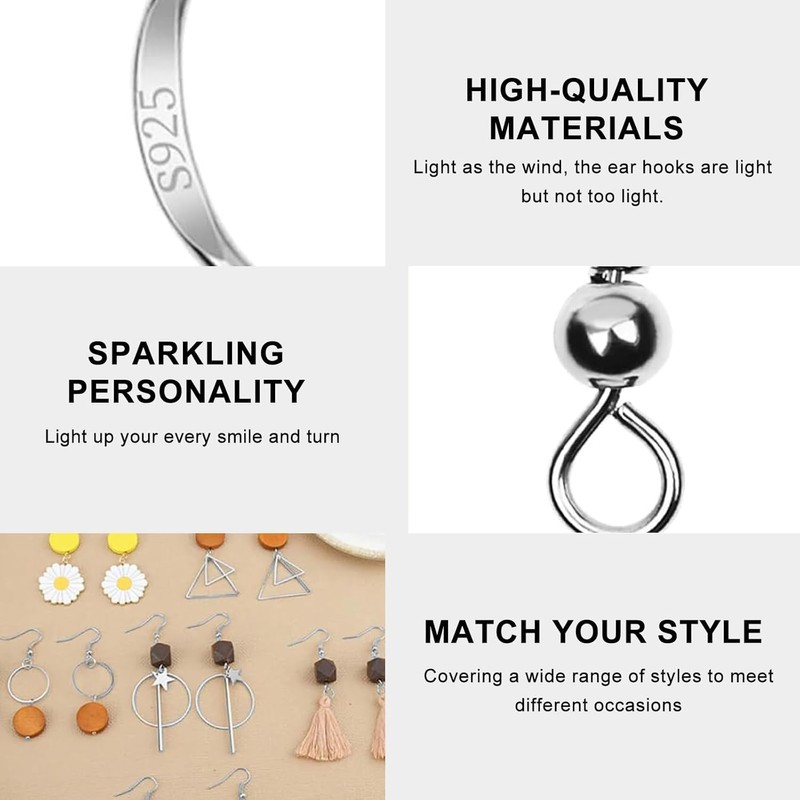 - Premium Material: The Silver Earring Hooks are made of 925 sterling silver, lead-free, nickel-free, hypoallergenic, with a shiny surface that does not fade, ensuring safety and durability for long-term use.