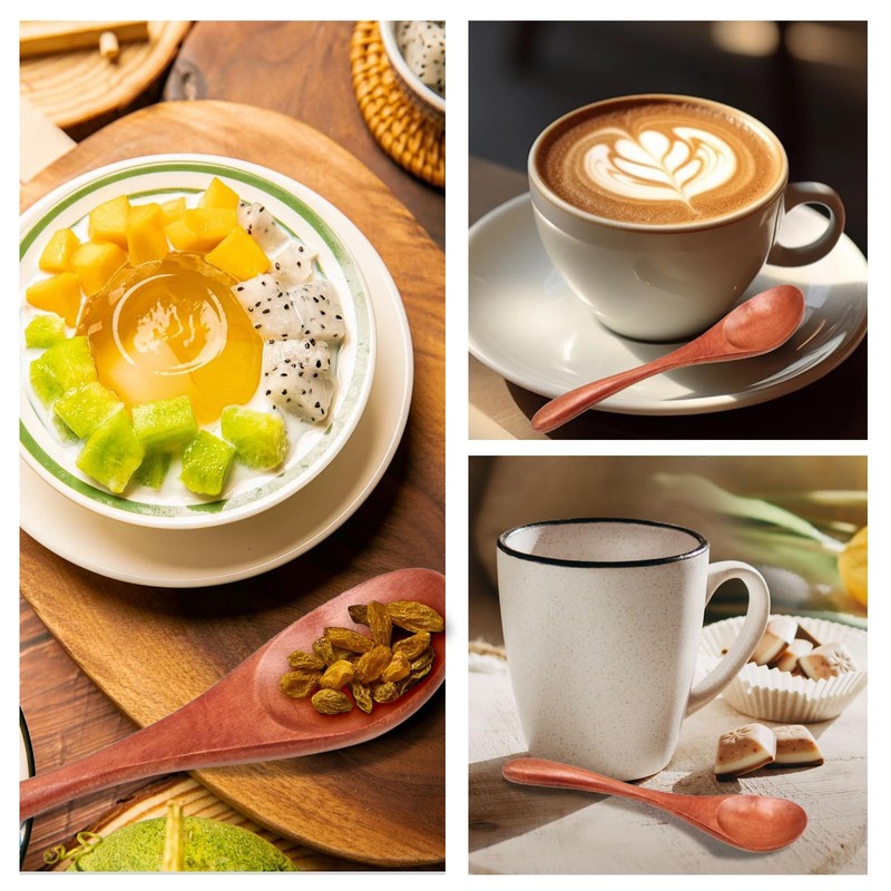 【Multi-Function Spoon】Our Wooden Spoons Set will not scratch up your delicate bowls and cups, burn your mouth when eating. They can be used for stirring, tasting, cooking, etc. Wood tableware for home, restaurant and hotel to adds charm to your dining-table!