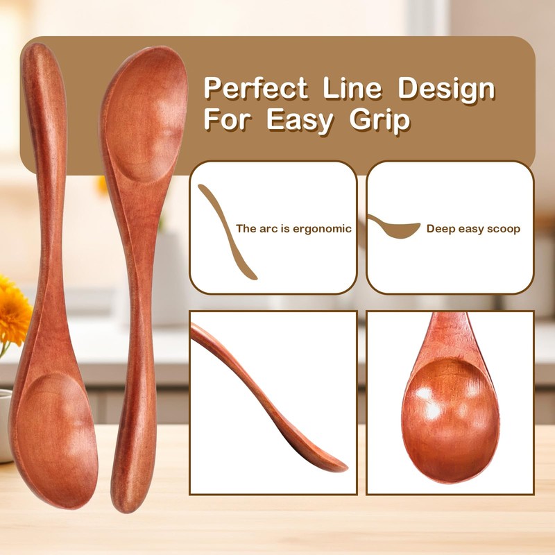 - 【SUSTAINABLE】Choose our sustainable asian kitchen wood spoons instead of plastic or metal.These reusable wooden teaspoons are also handy for scooping,stirring and DIY for crafts.