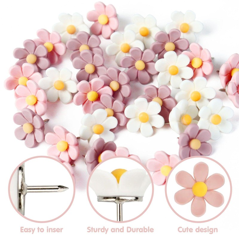 50 Pieces Flower Push Pins, Creative Push Pins, Decorative Push Pins, Cute Push Pins, Push Pins for Bulletin Boards, Push Pins for Paper Fixing