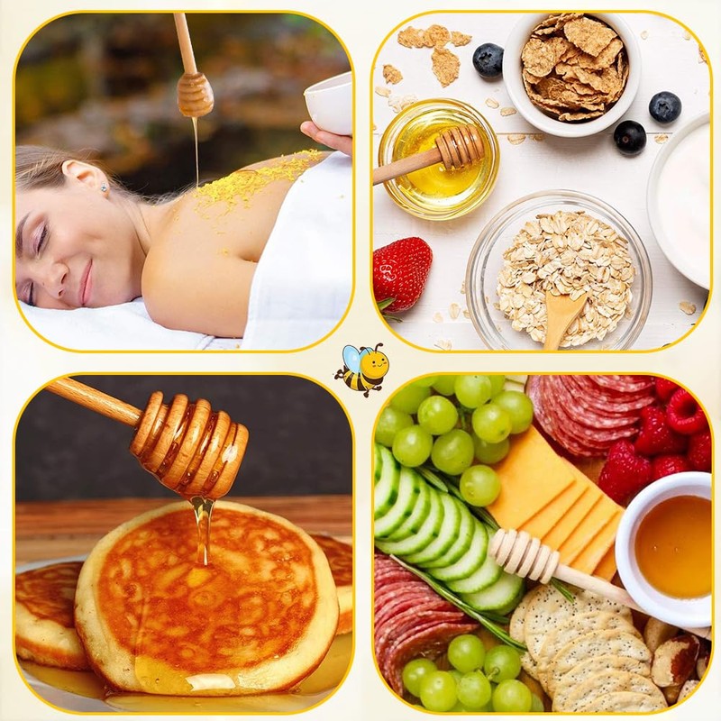 - 【Multifuncional Honey Spoon】Ideal para gotear miel, mermelada y cualquier otro líquido pegajoso. Puede rociar miel sobre tostadas, galletas y sándwiches, o rociarla tranquilamente en agua, té y zumos de verduras.