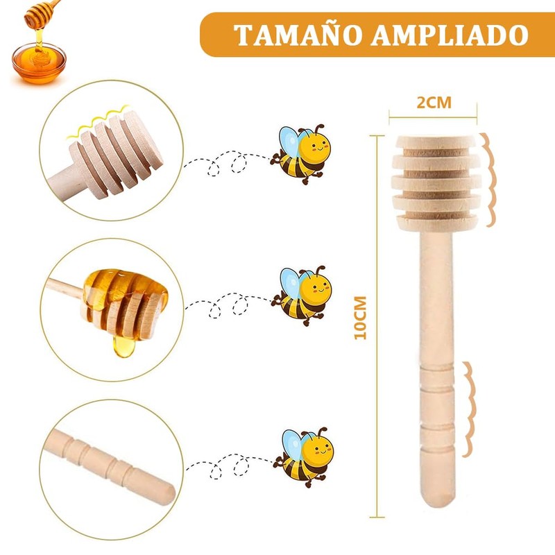 - 【Extended Size】Paquete contiene 50 palos de miel en tamaño de 10 cm, tamaño extendido, ligero y se puede llevar a todas partes. Perfecto para tarros de miel de 1 a 4 onzas o varias manualidades.