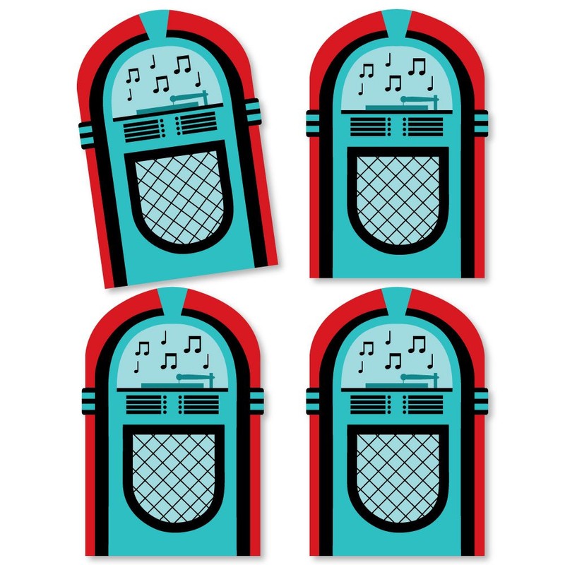 - DIY PARTY SUPPLIES: 50's Sock Hop party essentials include 20 large cut outs in jukebox shapes that coordinate with the 1950s decade party theme. Set of 20 1950s shapes SIZE 20 jukebox shapes 4.75" x 7". The unique design and large size makes these rock n' roll party decorations an impressive addition to any 1950s decade party.