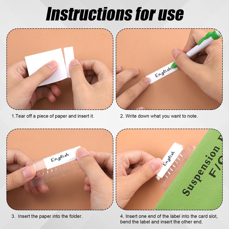 50 Set Hanging File Folder Tabs, Clear Plastic Hanging File Folder Labels Tabs with Paper Inserts Transparent File Folder Labels Tabs for Quick Identification