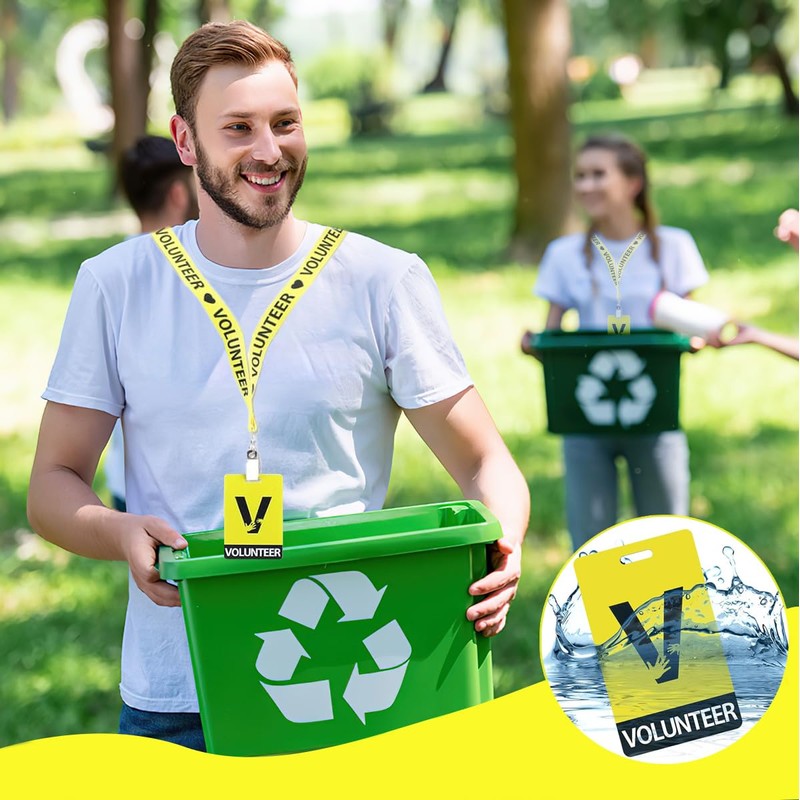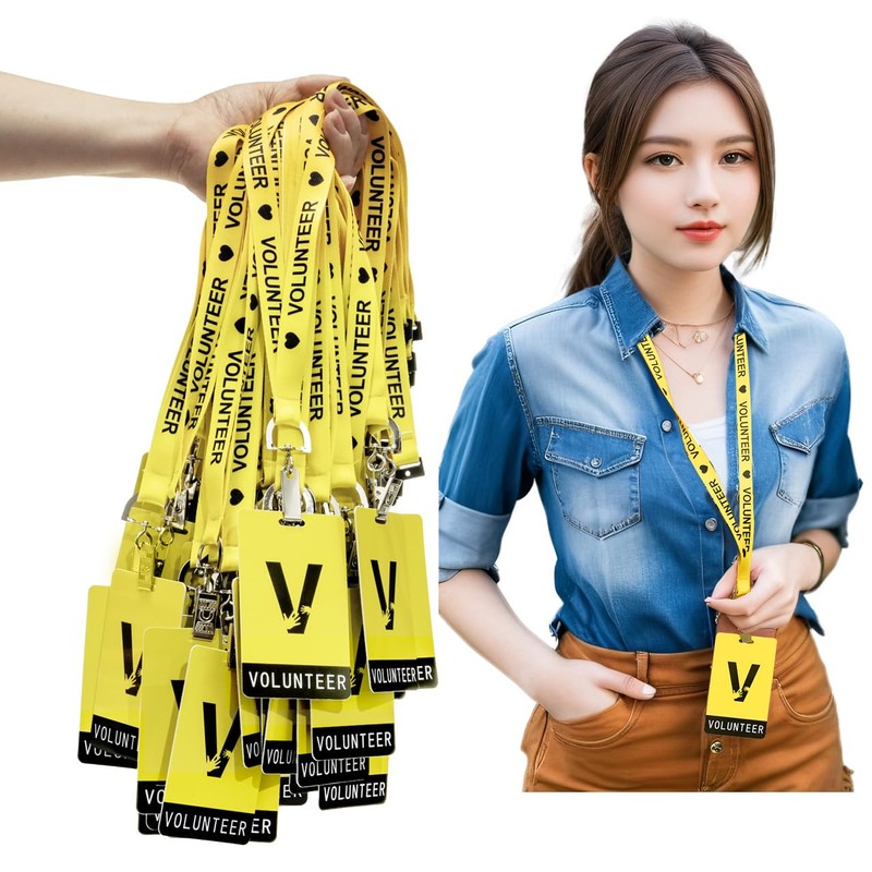 50 Sets Volunteer Lanyards with PVC Plastic Card, Yellow Volunteer Badge ID Breakaway, Lanyards and Badges with Clips Breakaway Lanyards for Fundraising Church, School Events Supplies (Yellow)