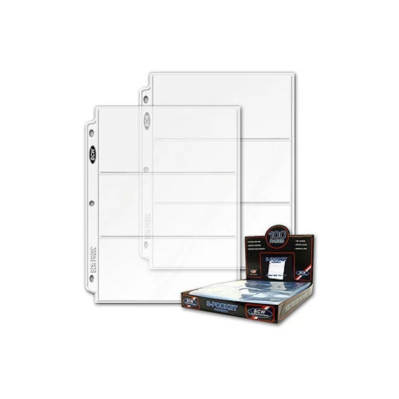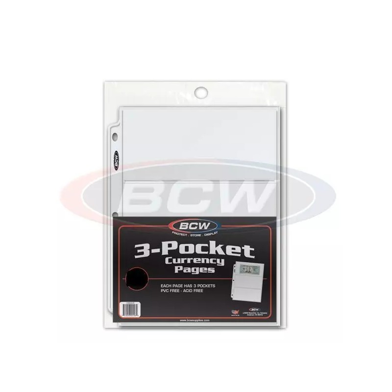 50 sheets 3 pocket pages Currency Bills Photo 3 1/2 X 8 Coupons