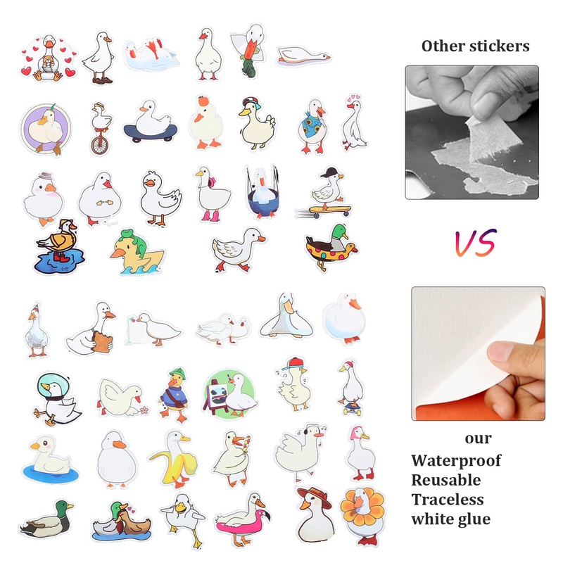 - VARIETY OF DESIGNS With 50 different duck stickers, this set offers a wide range of fun and cute duck designs that will add a personal touch to your items.