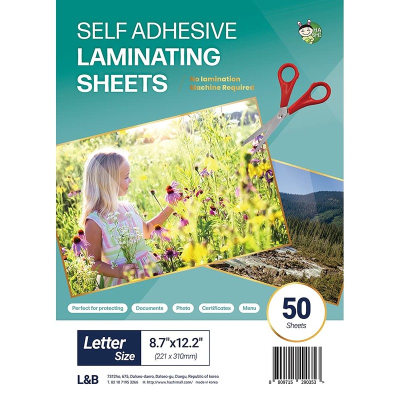 (50 Sheets) HA SHI Self Adhesive Laminating Sheets, No Machine Need, Letter Size, 8.7 x 12 Inch