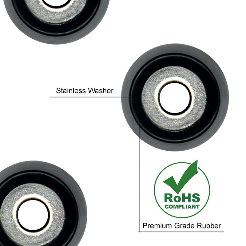 - A premium grade rubber which provides superb grip, shock absorption, and cracking resistance. Both the washer and the screw are stainless. The build-in washer can help the screw to hold the rubber bumpers;