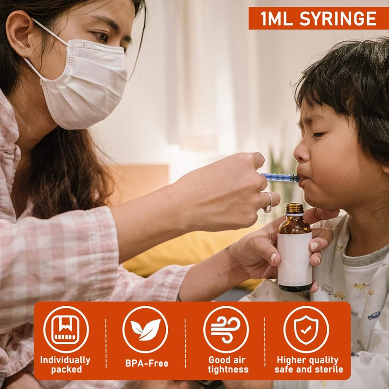 50 Stück 1ml Spritzen mit Sicherheitsverschluss, Einwegspritze ohne Nadel für präzise Flüssigkeitsmessungen, Lagerung, Experimente, für Kleintierfütterung, Kolostrum Spritze