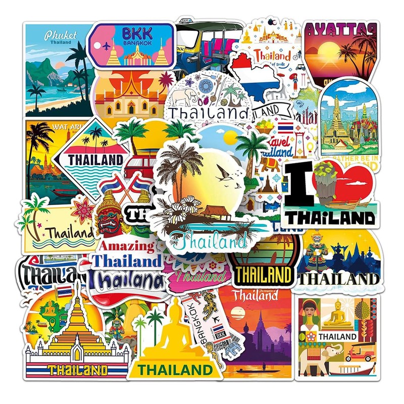 50 Stück Thailand Aufkleber, Thailand Urlaub Reise Aufkleber, Scrapbooking-Aufkleber, Wasserdichte Koffer Sticker für Scrapbooking, Wasserflasche, Gepäck, Skateboard, Gitarre, Laptop