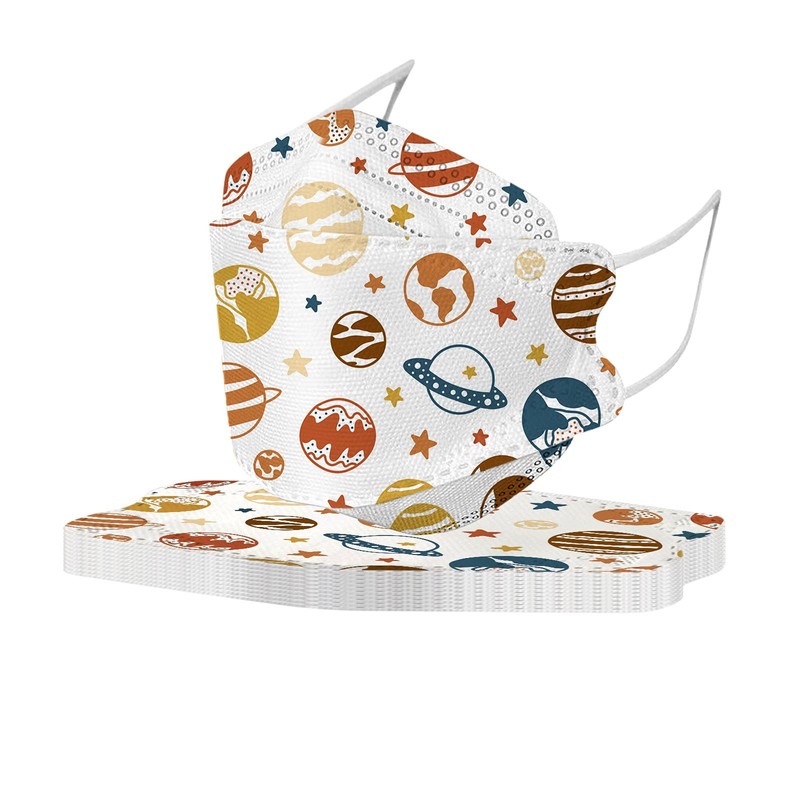 【50 unidades】Máscara desechable de seguridad tipo boca de pescado de 4 capas con diseño de patrón, cubrebocas desechables para niños, antivaho, a prueba de polvo, transpirable, cómoda para caras pequeñas (universo, mezcla B)