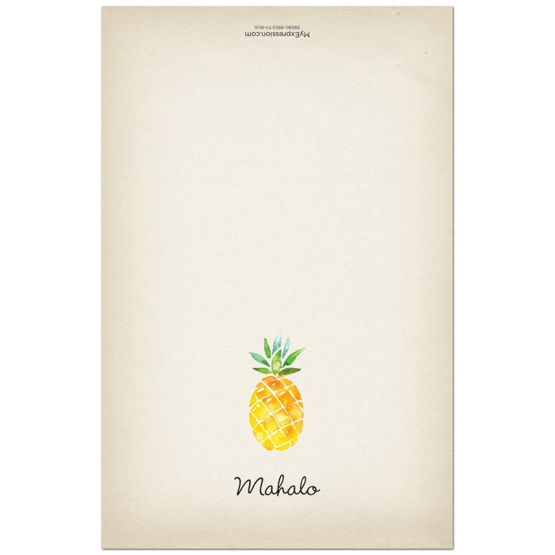 50 Watercolor Rustic Pineapple Hawaiian Mahalo Thank You Cards + Envelopes