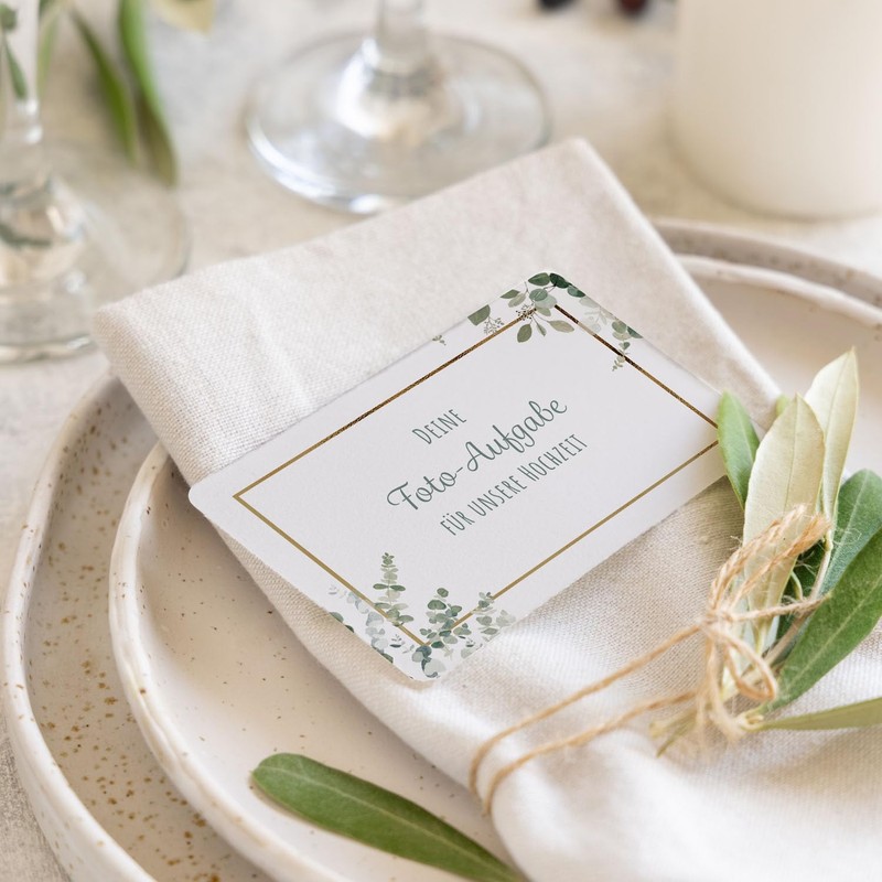 - High-quality design: the product is designed and printed in Germany. The elegant green-gold eucalyptus design blends perfectly into the wedding decoration.