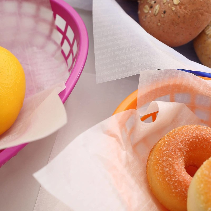 - FOOD BASKET LINERS – Create a unique and memorable dining experience by using our versatile and stylish food wrappers and liners. These wax paper sheets will give your food and take-out snacks a boost of personality.