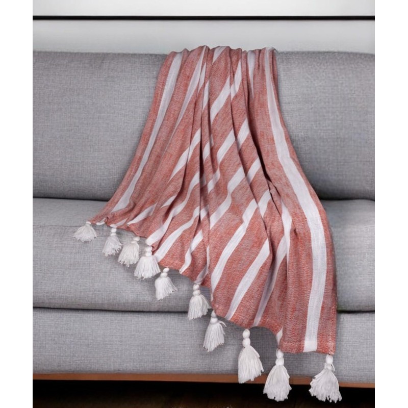 50" X 60" Rust Woven Cotton Striped Throw Blanket with Tassels