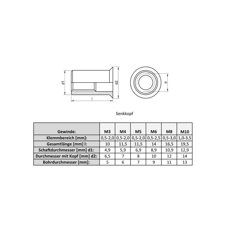 50 x Blind Rivet Nuts M5 Small Countersunk Rivet Nut Rivet Nut Galvanised Steel