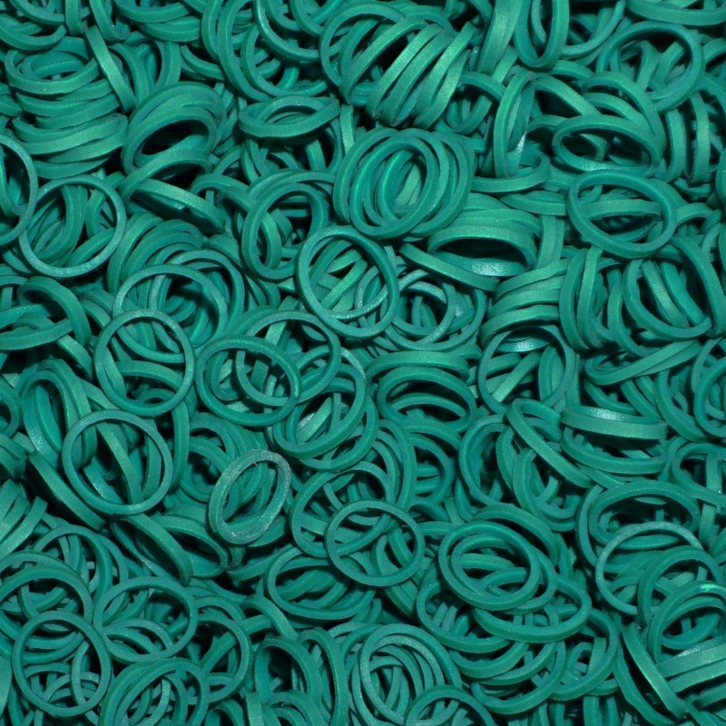 - 500 pequeñas bandas elásticas de goma verdes en un recipiente resellable