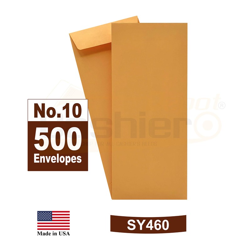 500 Cashier Depot No.10 Policy Envelopes (Open End), 4 1/8" x 9 1/2", Premium 24lb Kraft, 500 Envelopes (Gum Flap)