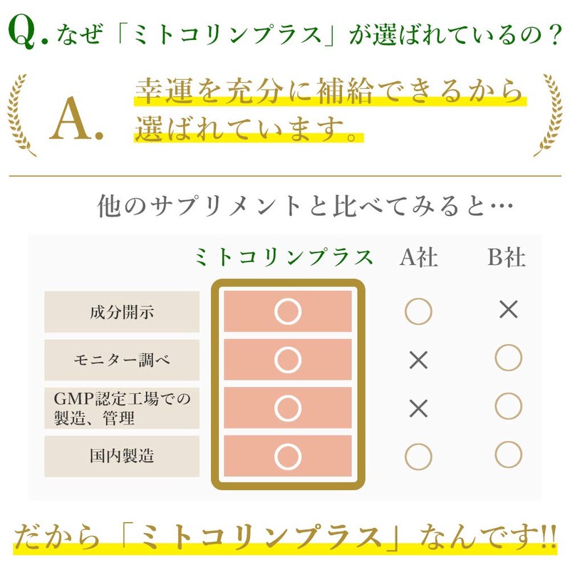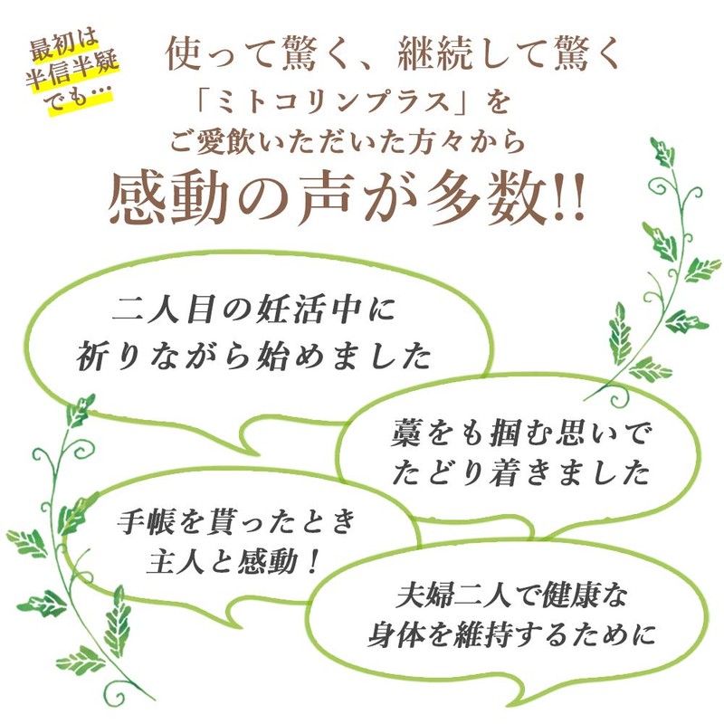 - 🍀【今までのサプリメントでは効果がなかったお客様の声から生まれたサプリメント】 「活動中に必要な栄養をしっかりと摂りたいけど、安心出来るものが欲しい!」このようなお声から誕生した葉酸500㎍とシノビオリン阻害成分を配合したサプリがミトコリンプラスです。葉酸500μg・シノビオリン遺伝子阻害成分配合★