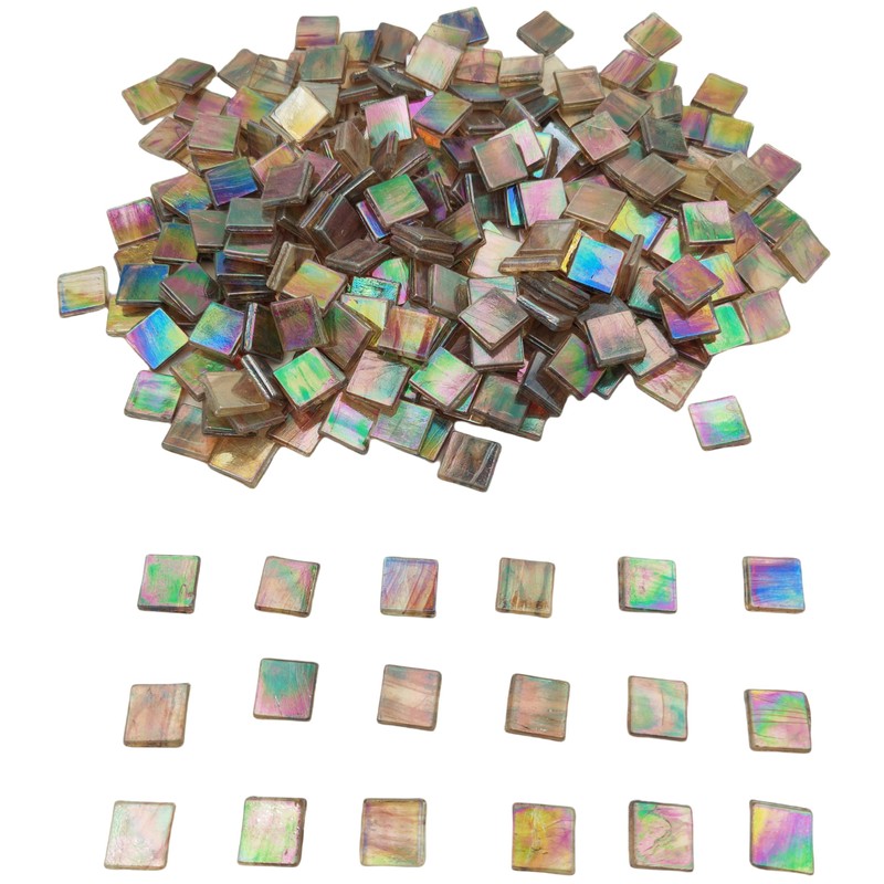 500 g Ice Jade Mosaic Tiles, 1.5 cm, Square Glass Mosaic Pieces for Crafts, Easy to Cut, Glass Tiles, Puzzle Material, Cut, Handmade (Iridescent Deep Khaki)