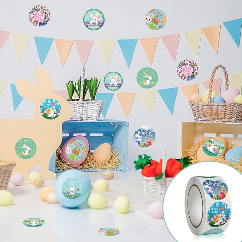 500 PCS Easter Stickers, Easter Bunny Rabbit Eggs Pattern Stickers, Happy Easter Stickers on a Roll, Decorative Easter Eggs, Cards, Scrapbooks, Scrapbooks, Envelopes,Gifts,Party Supplies