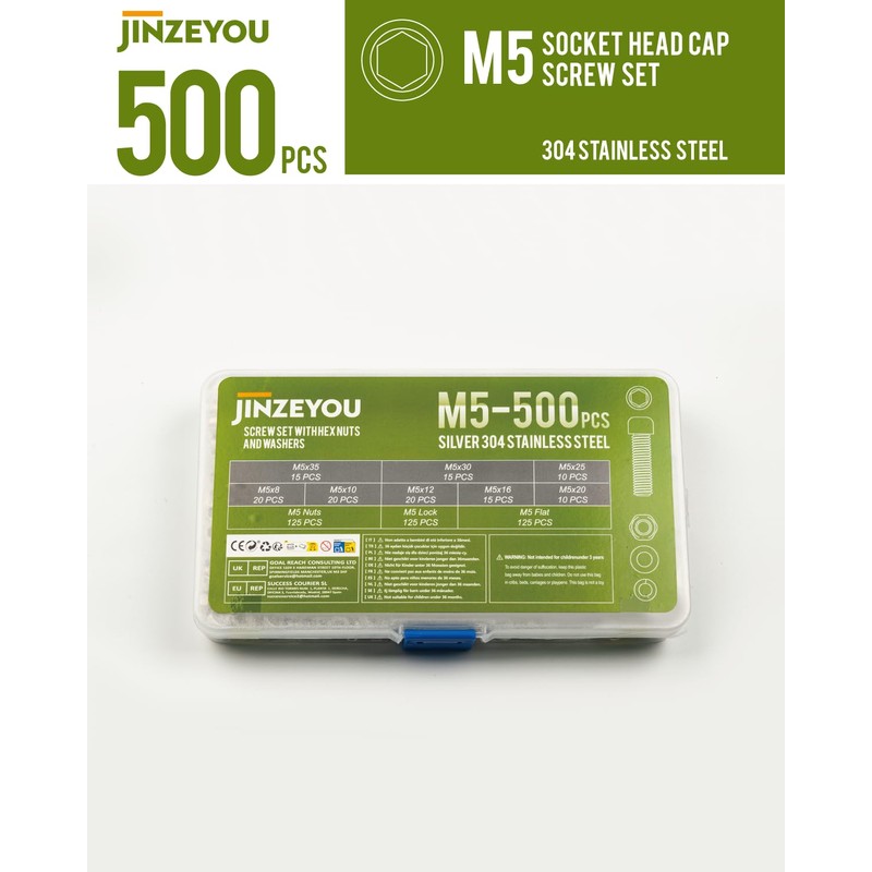 500 Pcs M5 Nuts and Bolts, Hex Socket Head Cap Screws Bolts and Nuts, Stainless Steel Machine Screws Bolts Set, Assorted and with Lock & Flat Washers Assortment for DIY