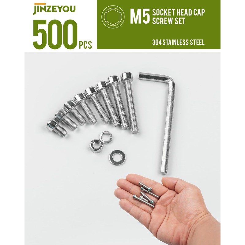 500 Pcs M5 Nuts and Bolts, Hex Socket Head Cap Screws Bolts and Nuts, Stainle...