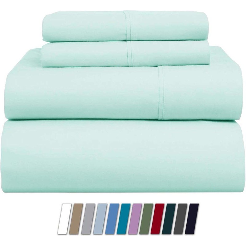 500 Thread Count Sheet Set fits Upto 10-12 Inches Deep Pocket 100% Egyptian Cotton Queen Bed Size, Aqua Solid (Fitted Sheet, Flat Sheet, Pillow Cases)