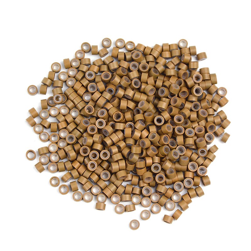 500 unidades de microanillos forrados de silicona de 5 mm para extensiones de cabello (rubio oscuro)