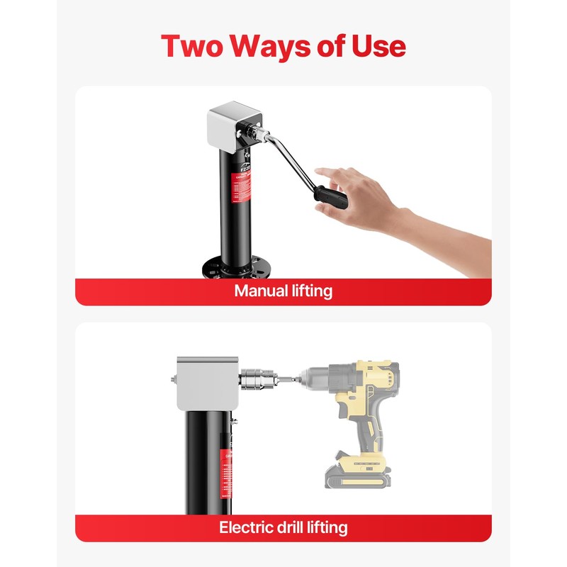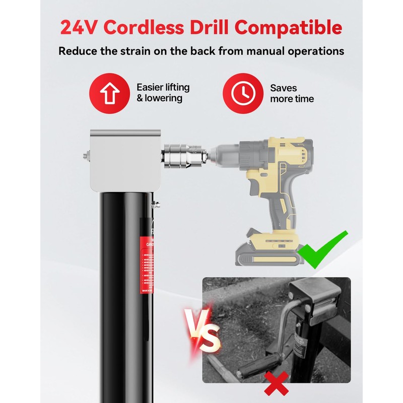 FZZD 5000 lbs A-Frame Trailer Jack, 23" Vertical Travel, 20-24V Cordless Drill Compatible, Adjustable Drop Leg, for Utility, Yacht (Black)