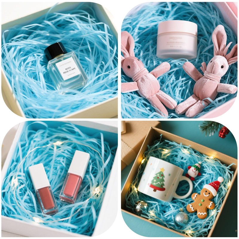 Material: paper pulp, no dust, no smell, clean and colorfast gift fillerUses: Wedding, party decoration, business activities, school activities, handmade, Christmas gifts, Thanksgiving gifts, birthday gifts, candy and biscuit boxes, fruit gift boxes, pet home decoration, cosmetics gift boxes, home decoration, mother's day gifts, father's day gifts, Valentine's day gifts, anniversary gifts, easter grass,etc.There is always no suitable box. Gifts are dangling in the box, which is neither safe nor beautiful. At this time, you might as well take a look at our raffia paper, which can fill the gaps perfectly while decorating gifts.Adding shredded gift stuffing to the gift box or gift bag can protect the gift or commodity and make the gift look fuller and more refined. A gift is full of love.