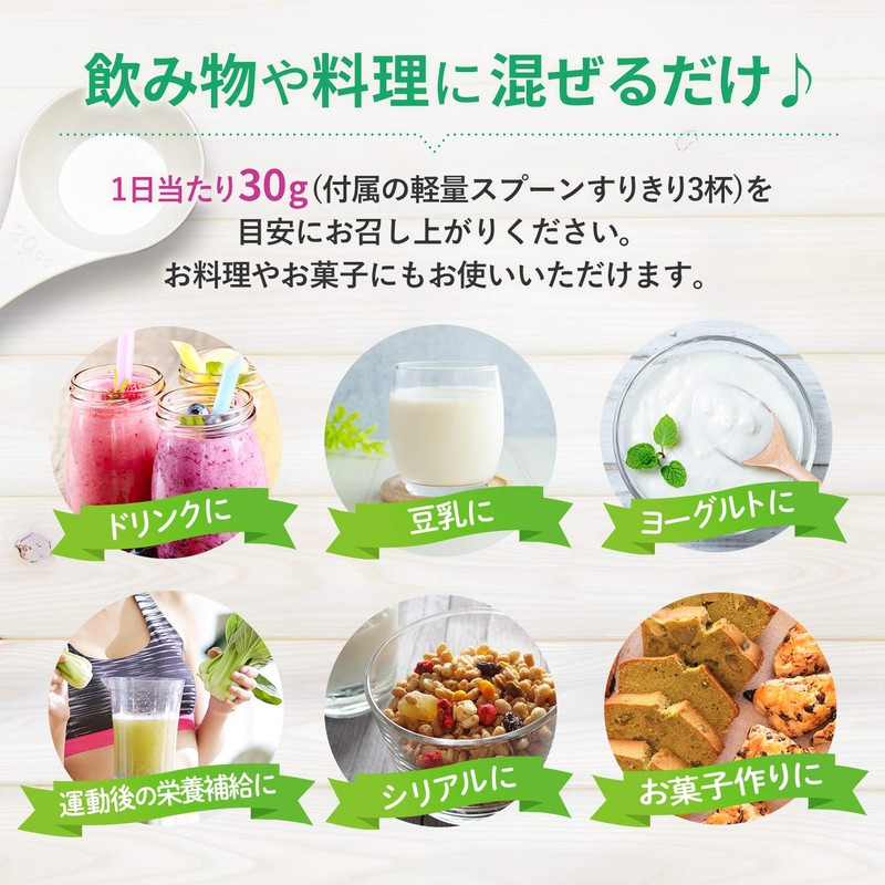 - ■お召し上がり方:一日当たり30g(付属の計量スプーンすりきり3杯)を 目安に、豆乳や野菜ジュース、スムージー、フルーツジュースに混ぜてお召し上がり下さい。お料理やお菓子にもお使いいただけます。 ■アマナ ナチュラル ヘンプ プロテインの原料は麻の実のみ。ベジタリアンやビーガンの方も安心してお召し上がりいただけます。植物性のプロテインはホエイプロテインだとおなかをこわす方にもお薦めです。