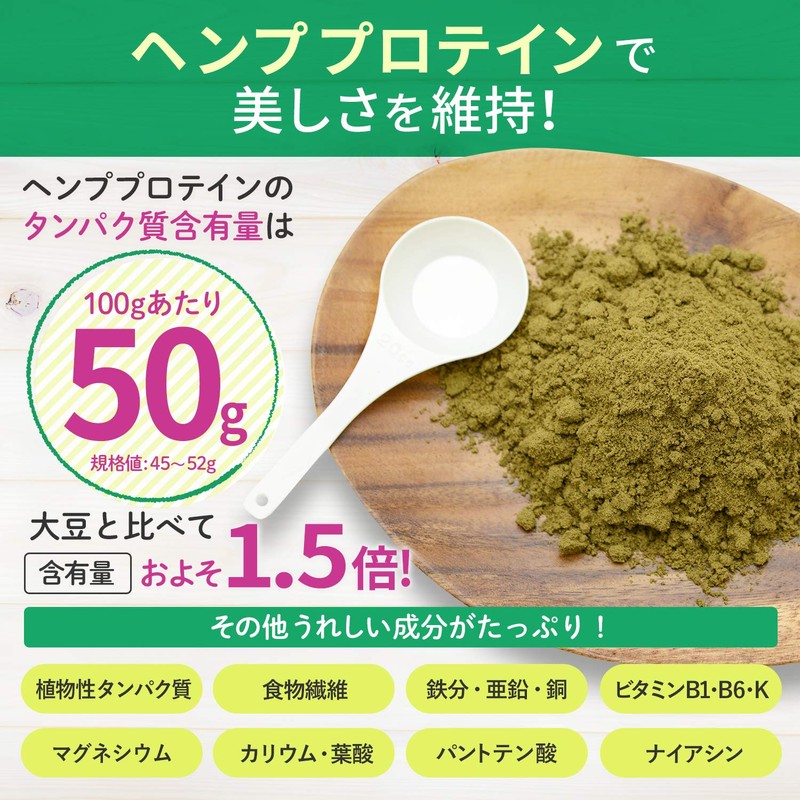 - ■アマナ ナチュラル ヘンプ プロテインは以下の栄養素がたっぷり豊富です! 「植物性たんぱく質、食物繊維、鉄分、亜鉛、 銅、カリウム、マグネシウム、ビタミンB1、 ビタミンB6、ビタミンK、ナイアシン、 パントテン酸、葉酸」 また、トランス脂肪酸、コレステロールは含まれていません。
