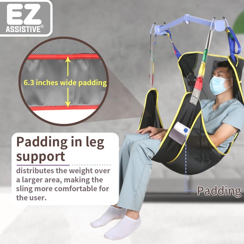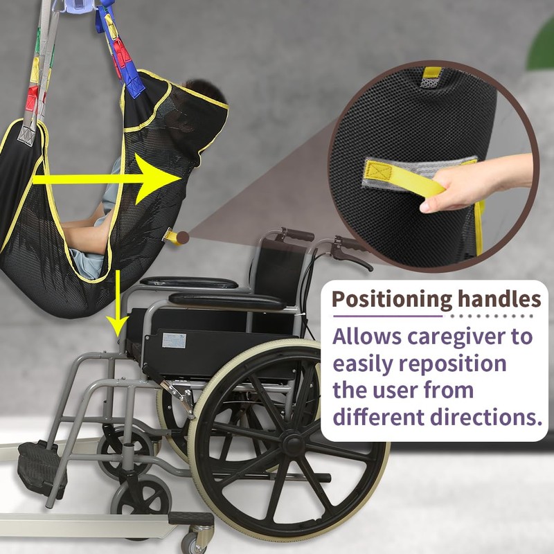 • Color-Coded Loops for Quick Setup – Brightly colored hanging loops help caregivers easily identify the correct attachment points, ensuring proper balance and safety during lifts.