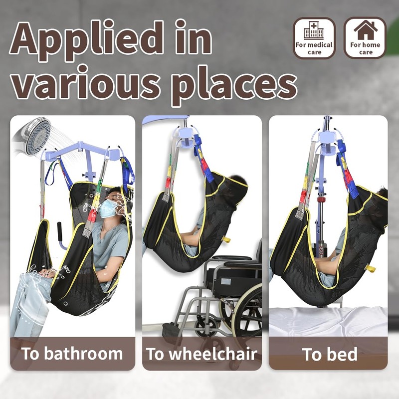 Enhance Patient Safety & Caregiver Convenience with Our Full Body Lift Sling Our 500lbs capacity Full Body Patient Lift Sling is engineered for secure, comfortable, and effortless transfers between beds, wheelchairs, toilets, and showers. Whether in hospitals, rehab centers, or home care, this sling ensures stable lifting while minimizing discomfort for patients with limited mobility. Key Benefits: 1.Optimized for Multiple Transfers – Supports smooth movement from bed to chair, wheelchair to toilet, and shower use, reducing strain on caregivers. 2.Quick-Identify Color-Coded Loops – Brightly marked attachment points help prevent errors and ensure proper lifting alignment for patient safety. 3.Breathable & Pressure-Relieving Design – Mesh fabric prevents heat buildup, while extra-wide padded thigh supports reduce pressure on sensitive areas. 4.Heavy-Duty & Long-Lasting – Made with high-strength fabric and reinforced stitching to withstand frequent use. 5.Easy to Clean & Maintain – Machine-washable (80°C) and quick-drying, ensuring hygiene and convenience for daily care routines. Who Needs This Lift Sling? ✔ Hospitals & Rehabilitation Centers ✔ Nursing Homes & Long-Term Care Facilities ✔ Home Caregivers & Family Members ✔ Patients Recovering from Surgery or with Limited Mobility