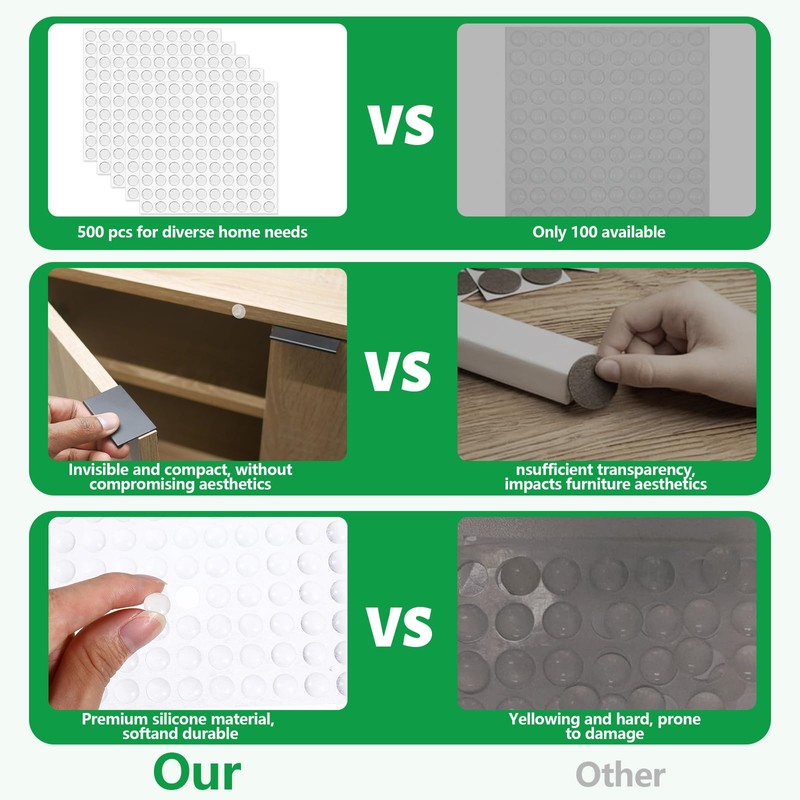- Value Package: 500pcs cabinet stoppers rubber are provided, which is far more than similar products. This multifunctional silicone door stopper is suitable for cabinet doors, chair backs and other scenes. The rubber foot pads for cutting boards can effectively protect the walls of home and office environments.