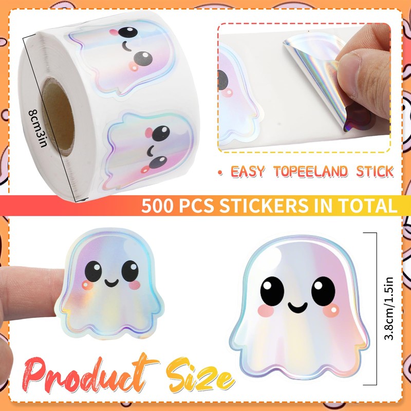 - 【Cute Ghost Designs with Holographic Shine】Each sticker features a playful ghost design with holographic foil, adding shimmer and fun to your Halloween crafts and decorations. A must-have for anyone who loves cute Halloween stickers.