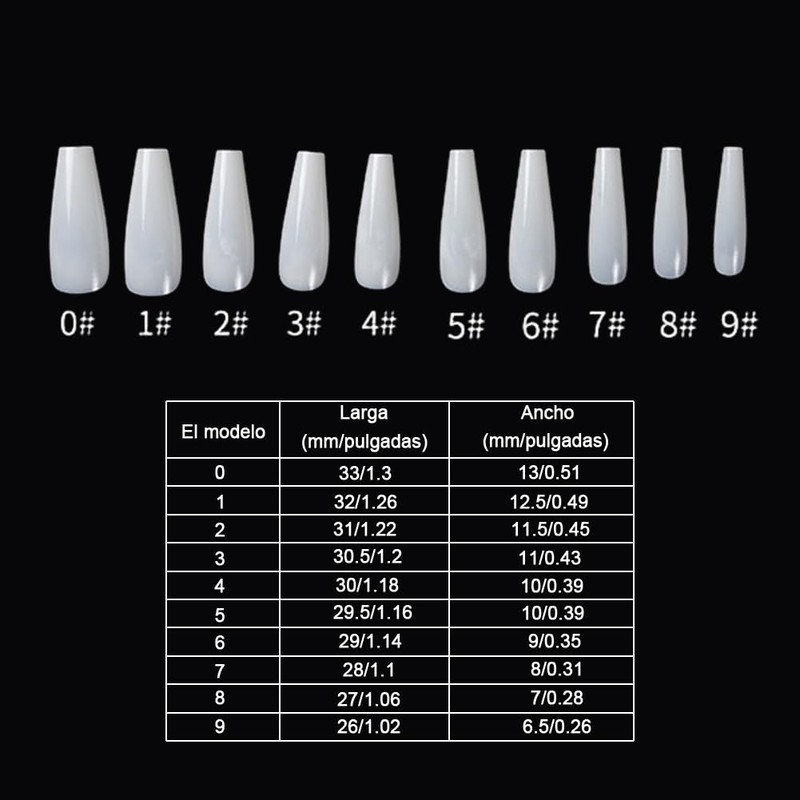- 【Lo que recibirás】El paquete incluye 500 piezas de puntas de uñas para que las uses, contiene un total de 10 tamaños diferentes, cada tamaño tiene 50 piezas.