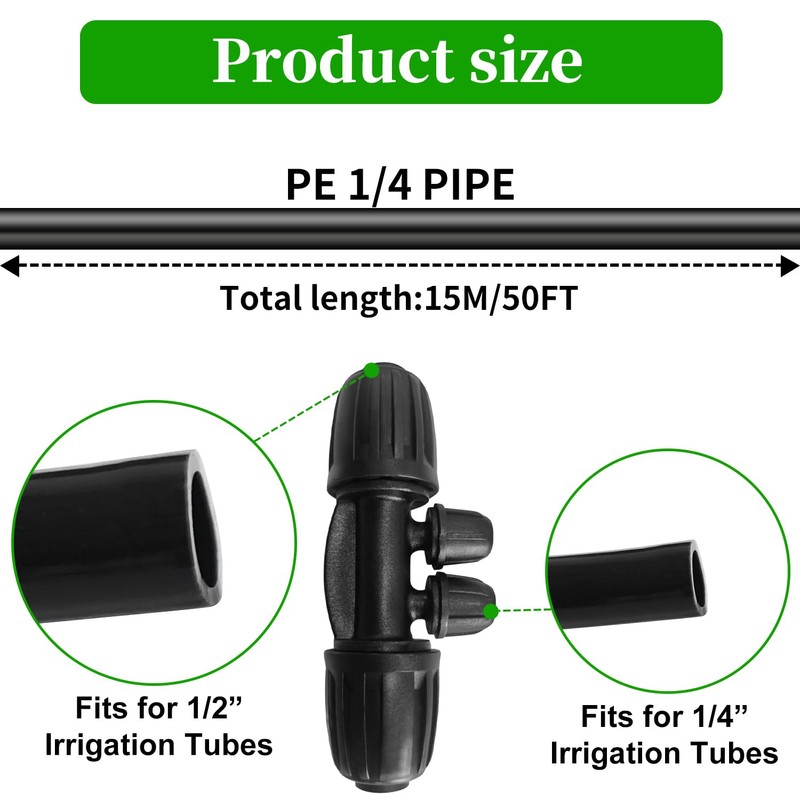 • Extensive Coverage: This drip irrigation set includes 50 feet of 1/2 inch tubing, perfect for watering gardens and landscapes.
