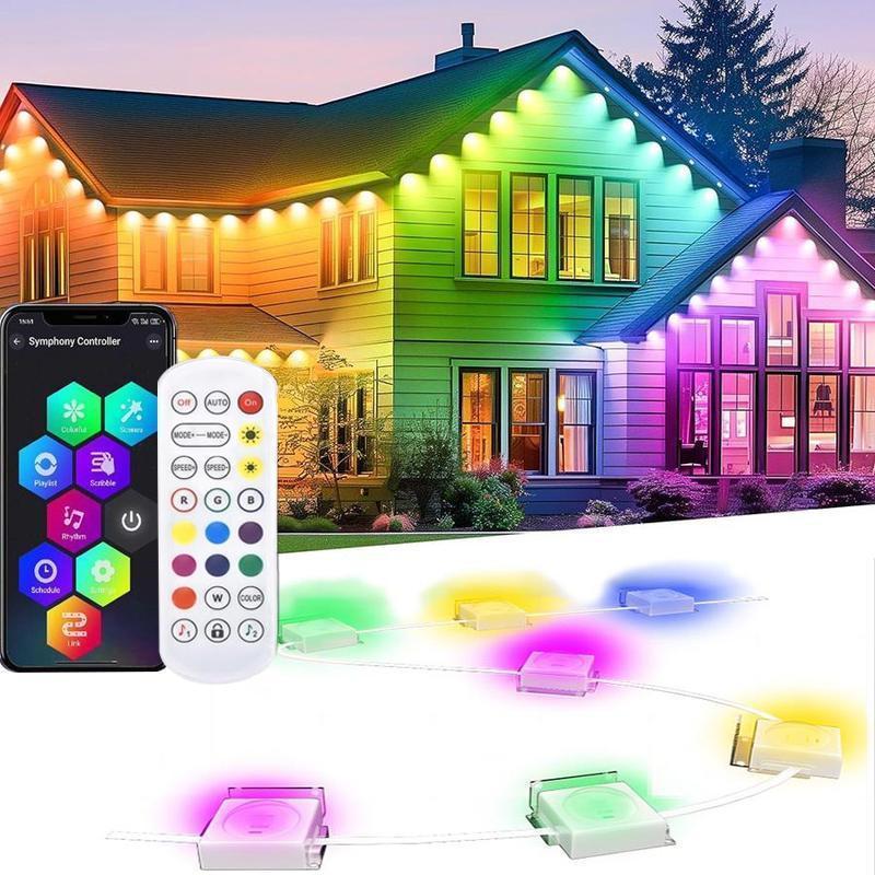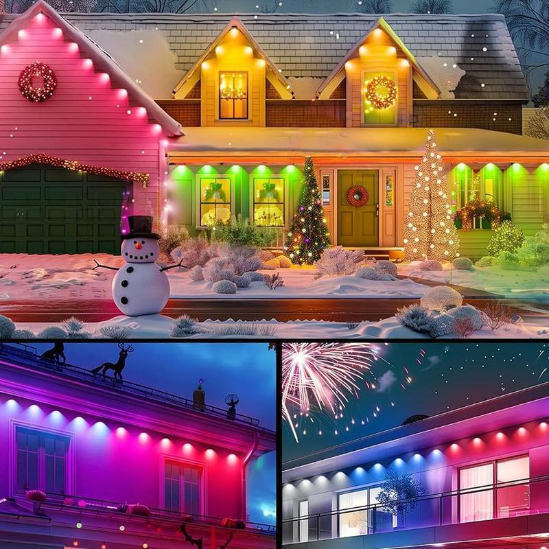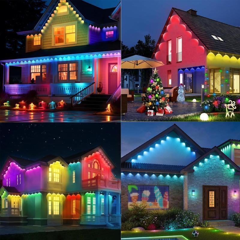 - 【Light up Your House】Tsanhoo permanent outdoor lights can brighten up your house and garden for a variety of holiday occasions! Rich full-spectrum color, using RGBIC three primary colors to create a variety of light colors. It can be used as daily lighting for outdoor eaves lights, and also be used for various festival decorations ambient lights, such as Halloween lights, Christmas lights, wedding, New Year, party atmosphere lights.