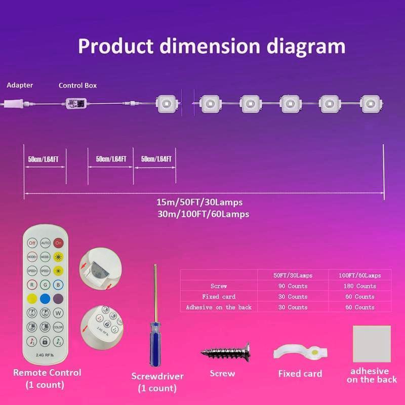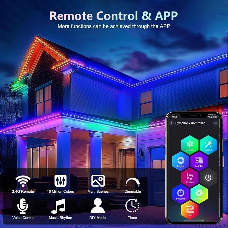 50ft/100ft DIY Outdoor Light, RGBIC Smart Eaves Light with Extension Connector & Remote Control, Waterproof Outdoor Light for Home Decor, party, wedding festival