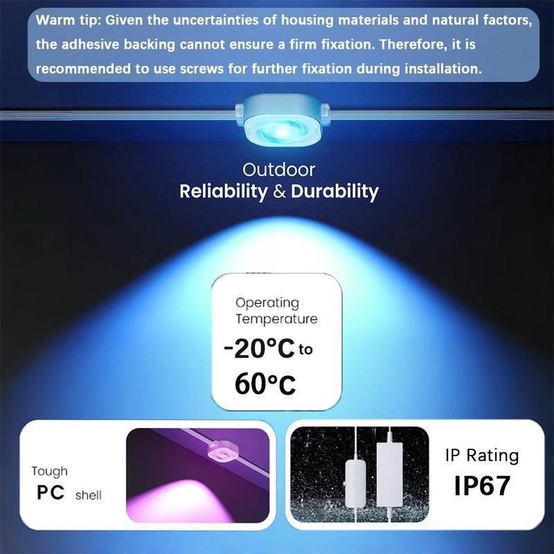 - 【Upgraded Reinforced Durability】The Tsanhoo outdoor lights are IP67 waterproof with IP65 Rated Control Box and Adapter, added anti-UV material, waterproof, sunproof, fade-resistant and durable. Year-round outdoor lights can use for up to 50,000 hours and work in bad weather from -4°F to 140°F (-20°C-60°C).