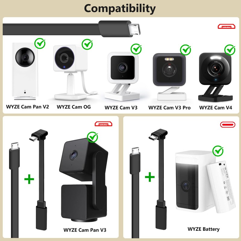 - 【Compatibility】Specifically designed for WYZE Cam Pan V3, WYZE Cam Pan V2, WYZE Cam V4, WYZE Cam OG, WYZE Cam V3/V3 Pro, and a perfect replacement for the WYZE outdoor plug. (Note: Camera not included.)