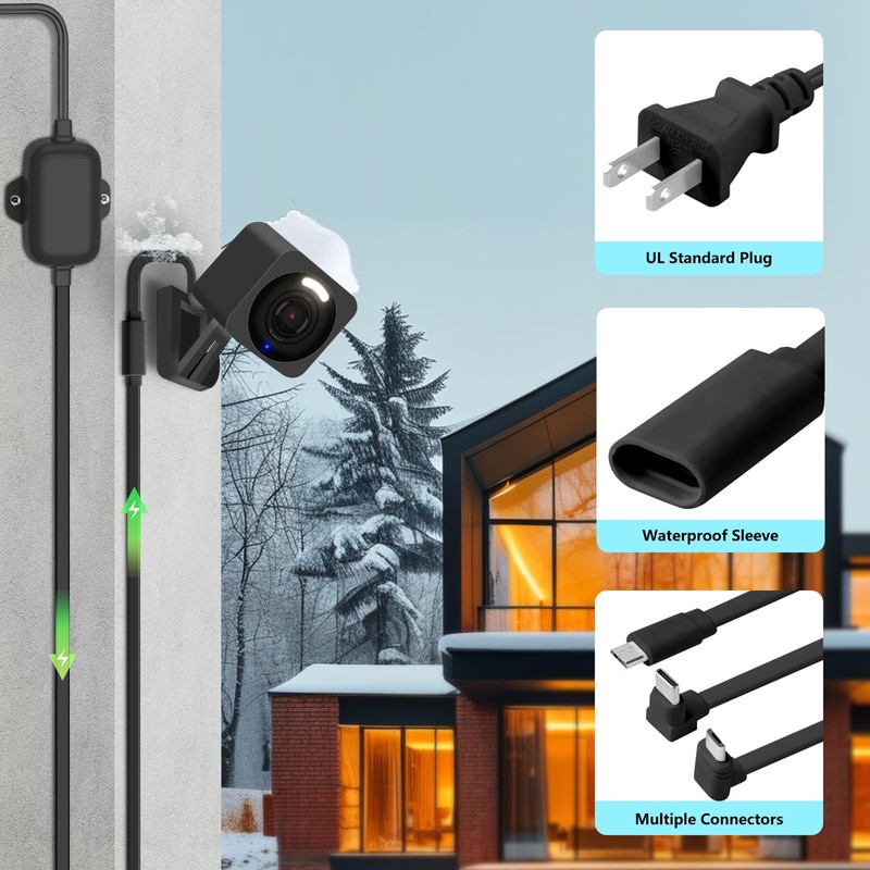 - 【Rust-Proof One-Piece Plug】Featuring an integrated plug design, this power cable prevents rust and corrosion caused by long-term outdoor exposure. Ensures a stable, efficient, and uninterrupted power supply for your camera.
