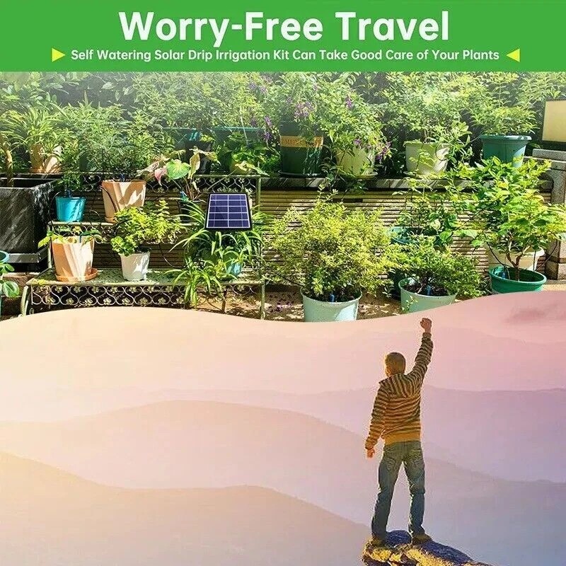 💦 💦 💦 【 Sturdy Material & IP67 Waterproof】 Our solar garden drip irrigation system adopts waterproof and high-temperature resistant materials that can be easily installed and used on soil, walls, or fences without the need for a water faucet or fixed power source, makeing it a perfect choice for your outdoor and indoor plant watering.