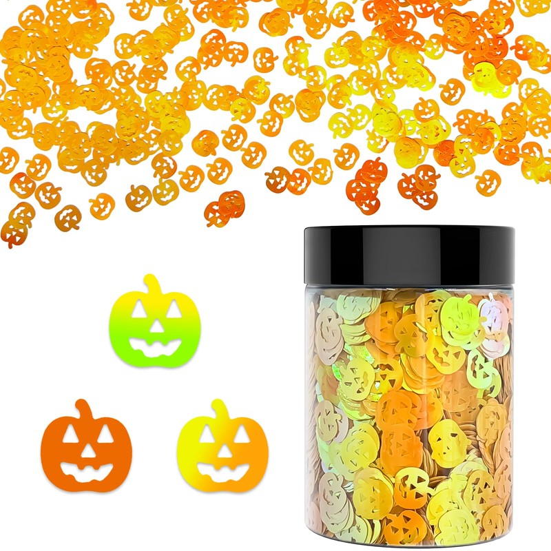 - Pearl Yellow Pumpkin 10 mm: The size of each pumpkin glitter is about 10 mm, and the weight of each bottle is 50 g/1.76 oz