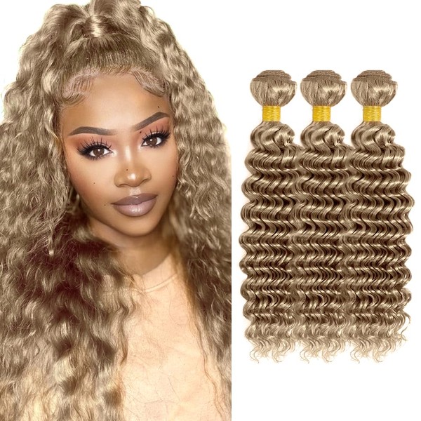- 【Ash Blonde Bundle Material】:Unprocessed Brazilian Virgin Human Hair, 8A Ash Blonde Deep Wave Human Hair Weave, Natural Health.