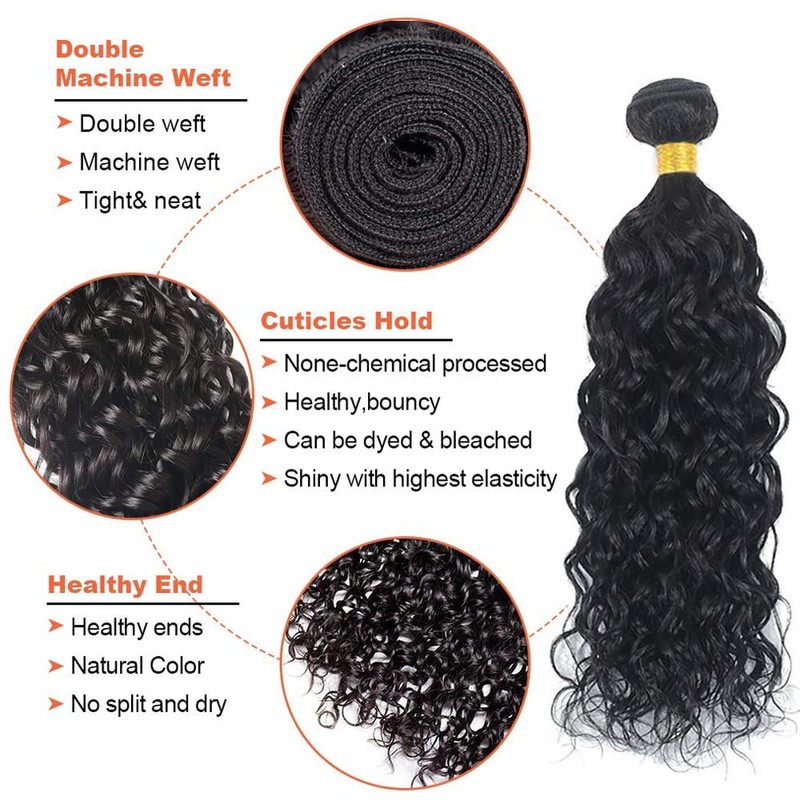 - 【Human Hair Bundles Material】: Unprocessed Brazilian Virgin Water Wave Human Hair Bundles. Soft and Elastic.